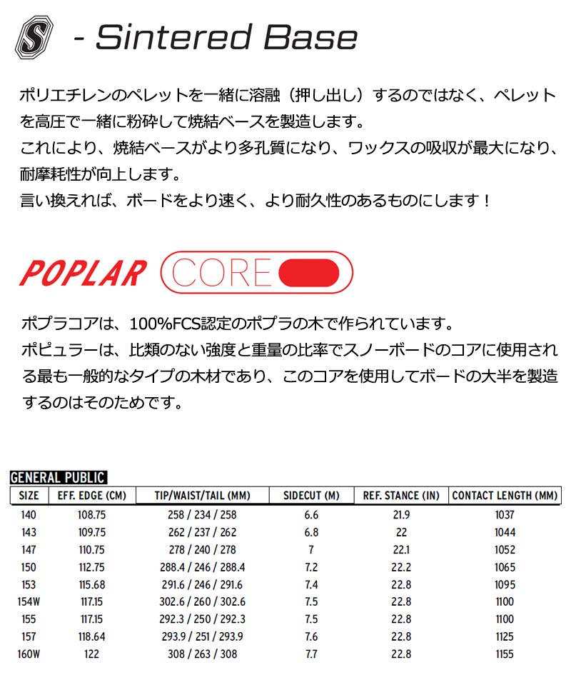 140-160cmという最も広いサイズレンジを揃えたGeneral Publicは、一般向けのボード。この万能ボードは、アラートキャンバー プロファイルを採用し、グルーマー、サイドヒッティング、パーク、そしてその間のあらゆる場所でくつろぐことができる。足元には安定感、反応性、ポップさを感じるのに十分なポジティブ・キャンバーがあり、インサートを過ぎると深い雪でも浮き、楽にプレスできる十分なロッカーがある。 ジェネラルグラフィックは、チームライダーであるライアン・コリンズ の写真とともに作られた。ビギナーからプロまで、その名も ジェネラル ・パブリック はすべての人のために作られた。 しっかりとしたメンテナンス施行を行わせて頂いておりますので、メンテナンス無しをお選びいただいた場合より当店加工のBASIC & EXPERTベースメンテナンスもご希望の際は、通常発送より2~4日後の発送となります。 多少お時間頂きます事をご了承ください。 |