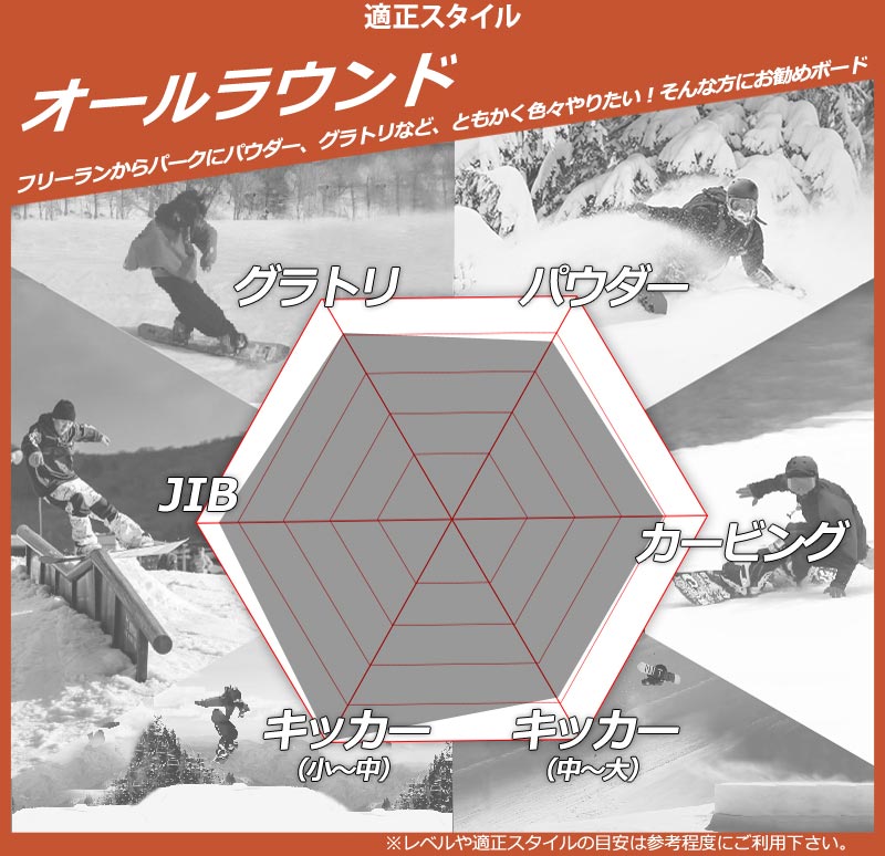 適正スタイル 1.グラトリ(グランドトリック)2.ジブトリック(BOX&レール)3.フリーラン4.ワンメイク(キッカー)