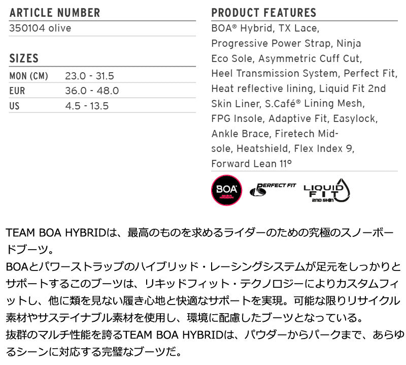 | モデル名 | TEAM BOA HYBRID LIQUID FIT | モデル名カナ | チームボアハイブリッド リキッドフィット |