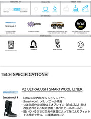 BOAシステムによるスムーズな着脱と正確なフィット調整、しっかりとした足首のホールド感が、パウダー、パーク、カービングなどさまざまなシーンで快適な滑りをサポート。