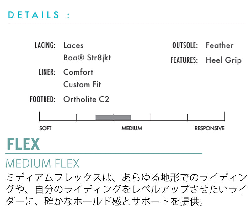 X Approach Lace SJ BOA?はアイコニックなサロモンのスニーカーからインスピレーションを得た、パーク、フリースタイルを得意とするユニセックスブーツです。最高級の素材とフィットトゥライド構造が、軽量でありながら最高級の快適性を提供します。BOA?を採用したSTR8JKTハーネスが踵の浮きをおさえ、高いサポート力を提供します。 ブーツとバインディングの相性やフィッティング、サイズ感に関して等、ご不明な点があればお気軽にお問い合わせください。サイズ交換も当店在庫有りの範囲で対応可能ですので、詳しくはサイズ交換リンクをご確認下さい。 |