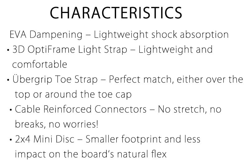 ※滑走での振動やストラップの着脱等でビスを使用している部分は緩んできますので、締り具合など滑走前に必ずご確認をお願いします。またご使用のブーツとストラップの調整をお願いいたします。調整が適切でない場合、負荷が集中し破損の原因となります。