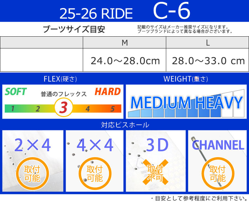 | サイズ目安 | ・記載のサイズはブーツブランドによって異なります。 |