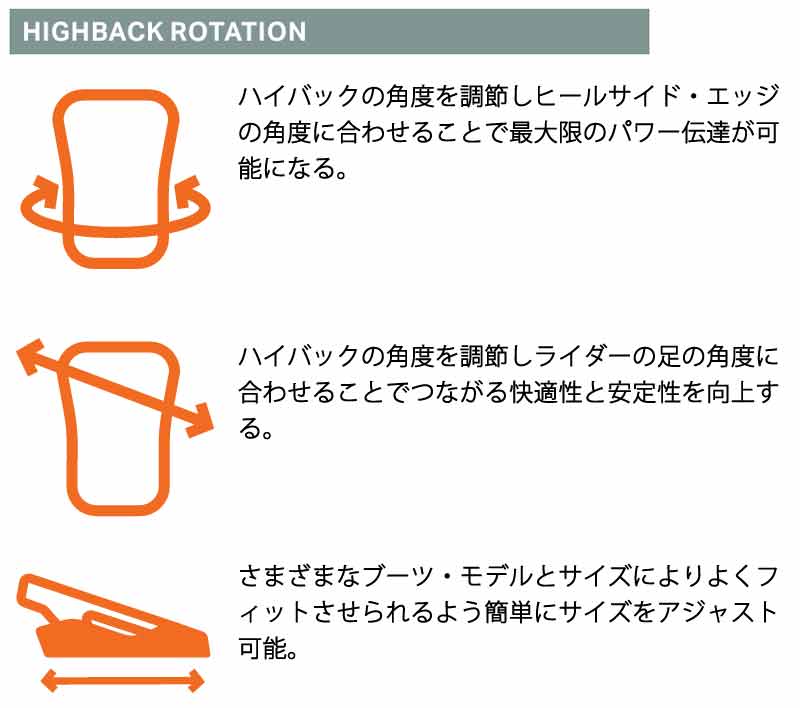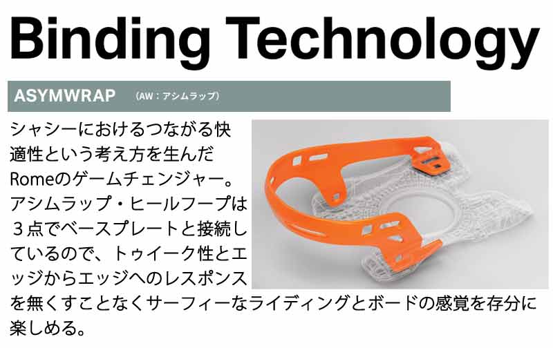 | ベストマッチブーツ | ・ROME/ローム ※ご使用サイズやモデル等で変わる部分もございますのであくまで目安としてお考え下さい。 こちらに記載以外のバインディングにも使用可能です。 |