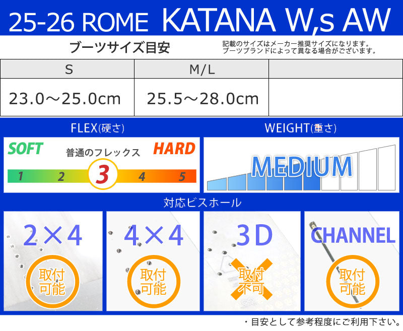 | サイズ目安 | ・記載のサイズはブーツブランドによって異なります。 |