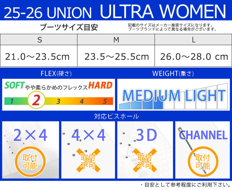 | サイズ目安 | ・記載のサイズはブーツブランドによって異なります。 |