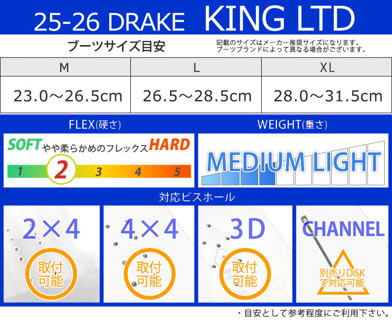 | サイズ目安 | ・記載のサイズはブーツブランドによって異なります。 |