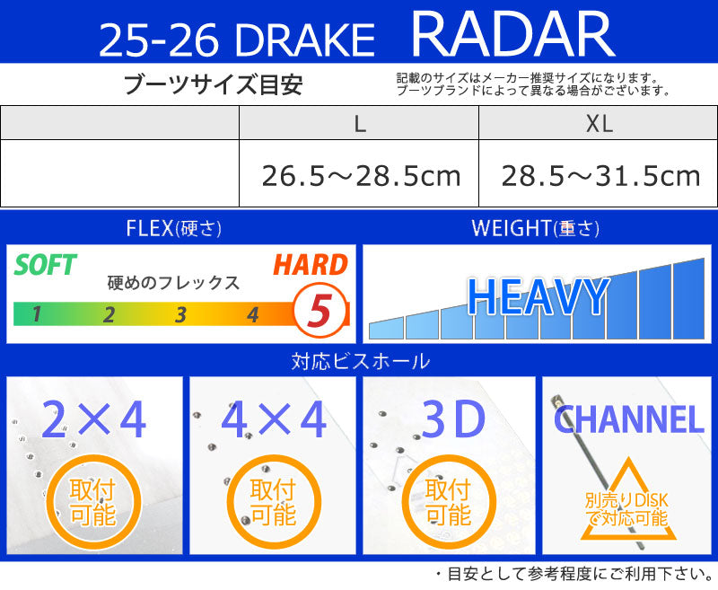 | サイズ目安 | ・記載のサイズはブーツブランドによって異なります。 |