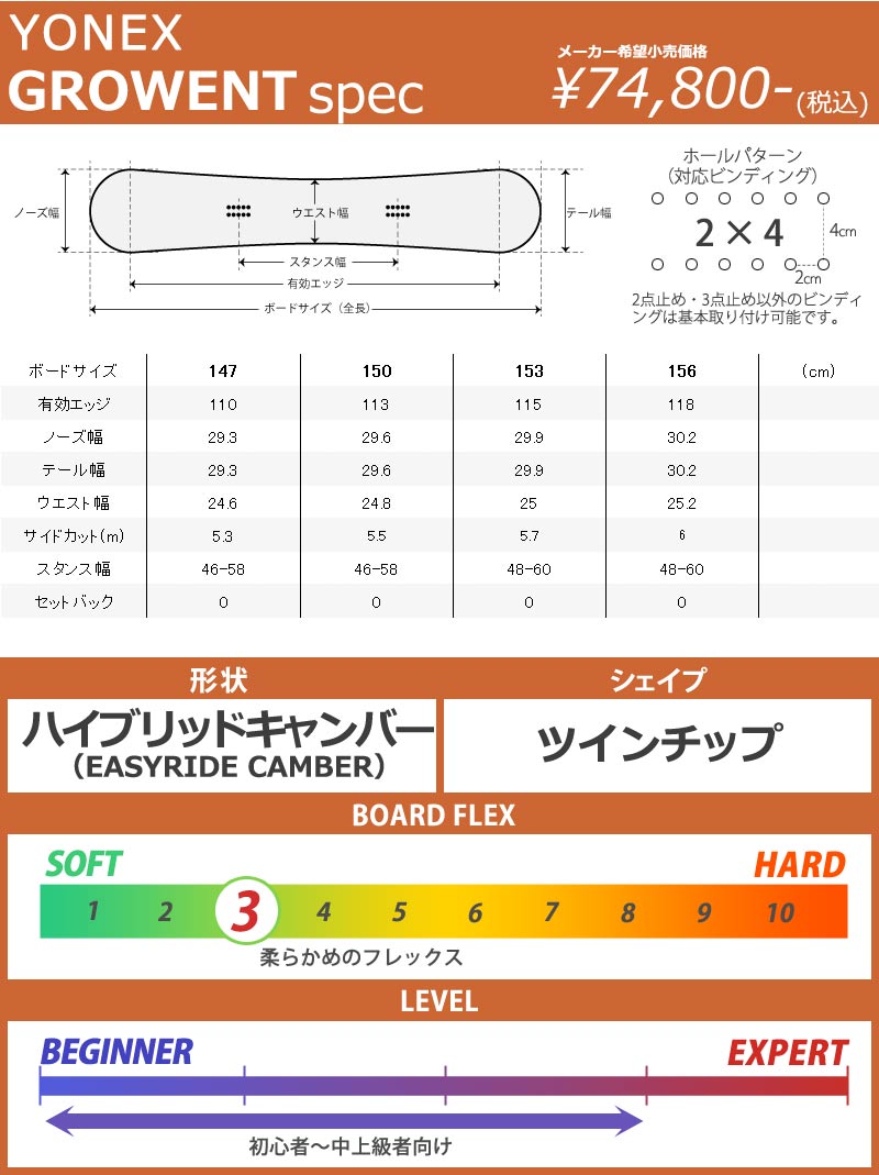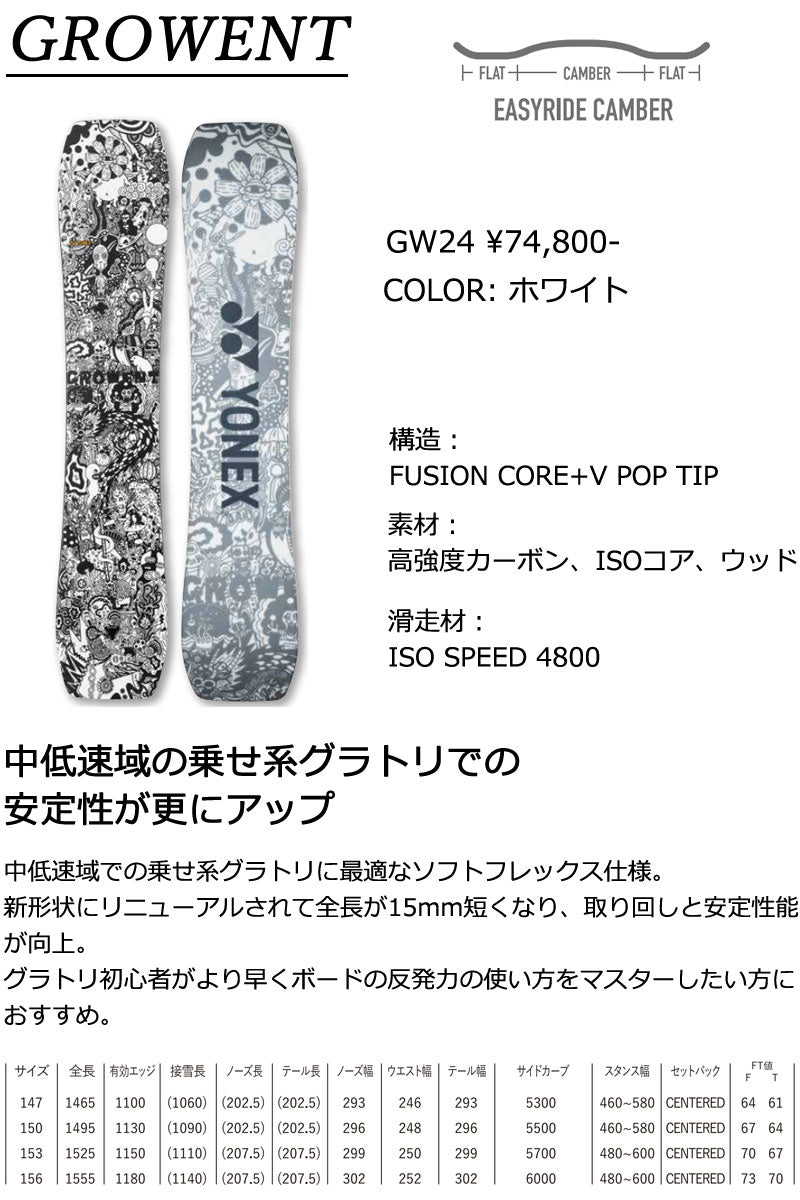 24-25 YONEX/ヨネックス GROWENT グローエント メンズ スノーボード グラトリ パーク 板 2025 型落ち