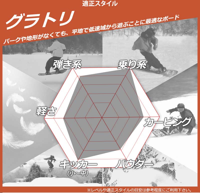 適正スタイル 1.グラトリ(グランドトリック)2.ジブトリック(BOX&レール)3.フリーラン4.ワンメイク(キッカー)