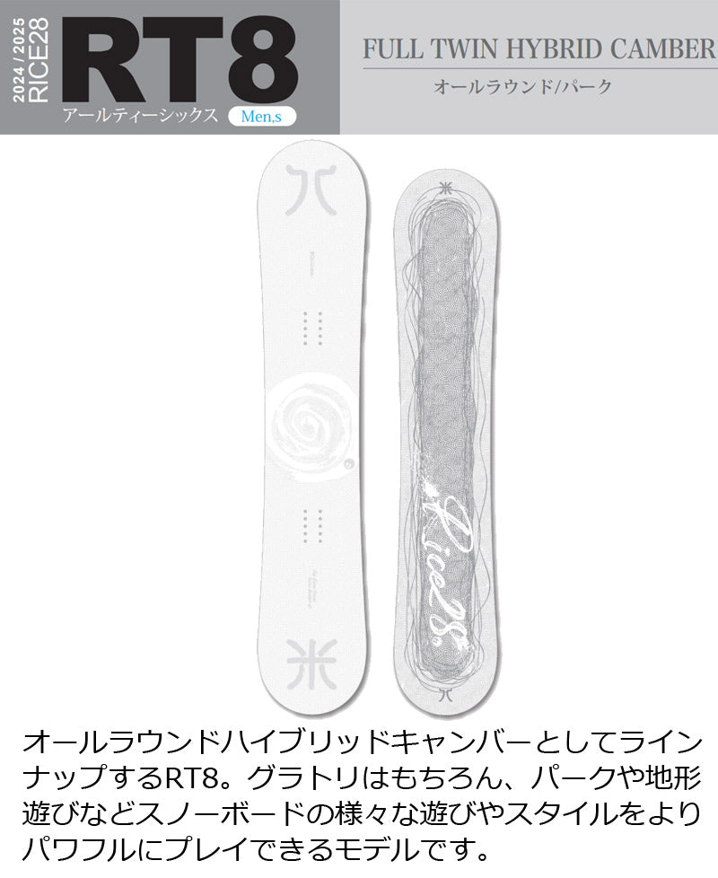 RT8は、パークや地形での遊び心と、フリーランでのスピード感を両立させたボードです。 グラフィックこのボードは、ジャンプやトリックを楽しむための安定感があり、ボード性能を最大限に活かせます。そして、スピードを出すフリーランでも、RT8は頼れる味方です。急斜面や高速カービングでの安定性は、一度体験すると手放せなくなるほどです。非圧雪のパウダーでも、その速さとしっかりしたフレックスが存分に活かされます。RT8は、パークやフリーラン、パウダーランまで多岐にわたるシチュエーションで楽しめて、そのフレキシブルな使い勝手と、速度での感動を求めるなら外せない一本です。 最強の持続性を誇るマウンテンライフワックスはMLW商品ページよりボードと合わせて同時ご注文ください。 詳しくはMOUNTAIN LIFE WAXページをご確認ください。 しっかりとしたメンテナンス施行を行わせて頂いておりますので、メンテナンス無しをお選びいただいた場合より当店加工のBASIC & EXPERTベースメンテナンスもご希望の際は、通常発送より2〜4日後の発送となります。 多少お時間頂きます事をご了承ください。 |