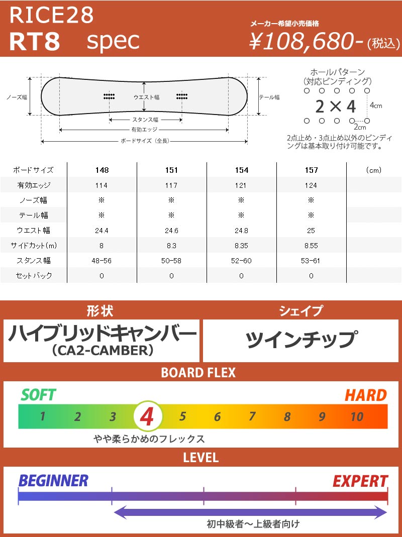 | 形状 | ハイブリッドキャンバー | シェイプ | ツインチップ |