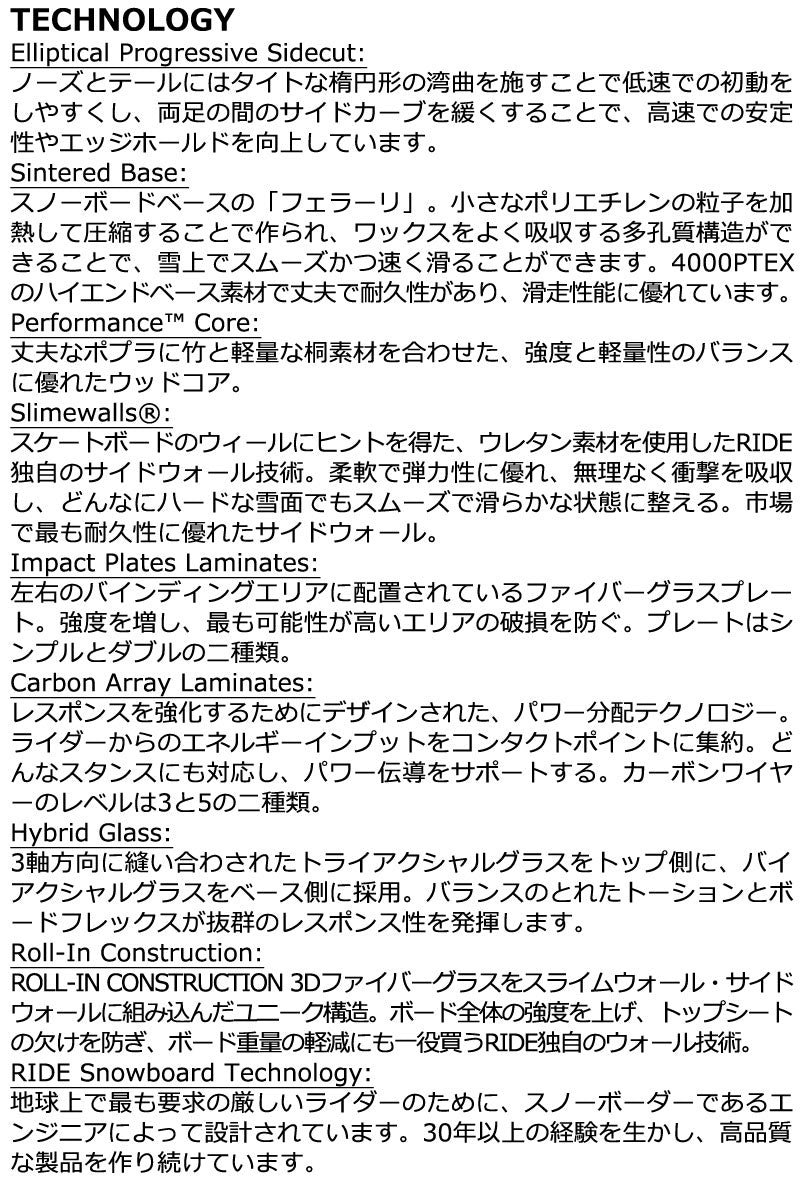 | 滑走適正スタイル | 1.パウダーラン 2.カービング 3.フリーラン 4.ワンメイク(キッカー) (スタイルや技術によって変化します) |
