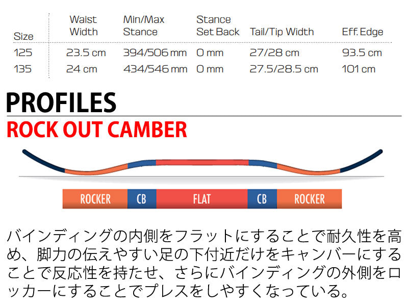 | 形状 | ハイブリッドキャンバー(ROCKOUT CAMBER)ディレクショナル |