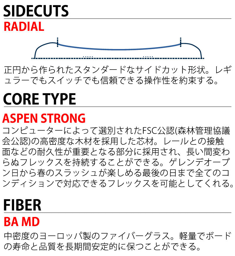 | 形状 | ハイブリッドキャンバー | シェイプ | ディレクショナル |