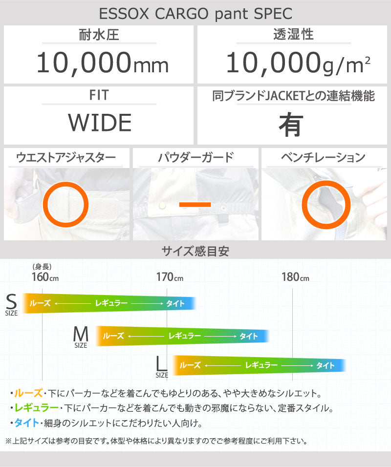 | モデル名 | ESSOX CARGO pant | モデル名カナ | エソックスカーゴパンツ |