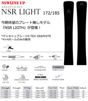 コメント 今期待望のプレート無しモデルNSR LIGTHが登場!NSRで培った性能をプレート無しでも乗る事ができるように落とし込んだモデルでノンメタルカーボン仕様。ハイシーズンから春までフリーカービングを存分に楽しんで頂きたい。