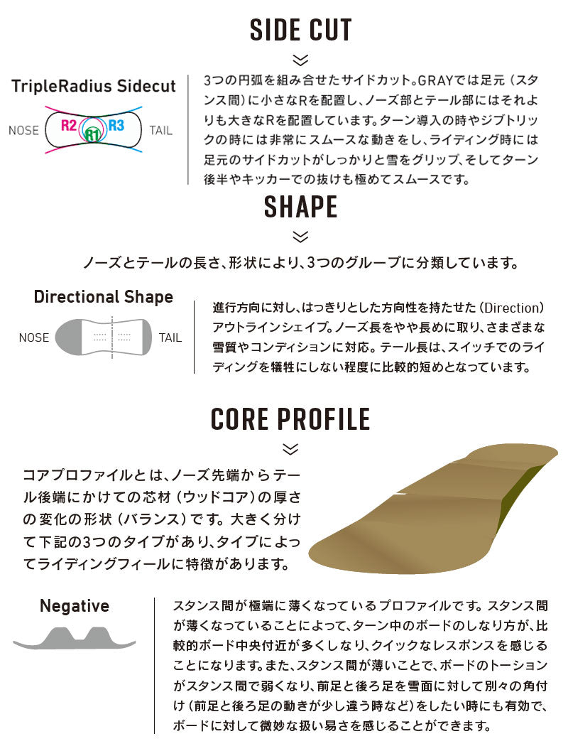 | 形状 | キャンバー | シェイプ | ディレクショナル |