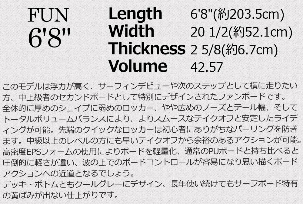 | サイズ | 6'8"(約203.5cm)*20 1/2(約52.1cm)*2 5/8(約6.7cm) CL値:約42.57 |