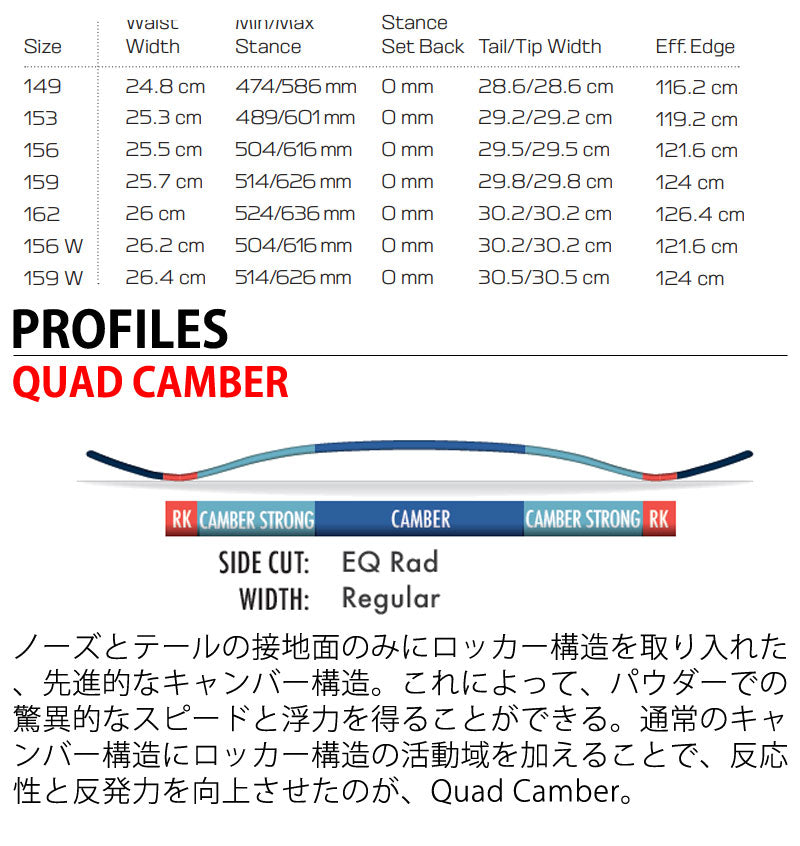 | 形状 | ハイブリッドキャンバー(Quad Camber)ツインチップ |