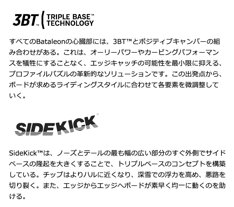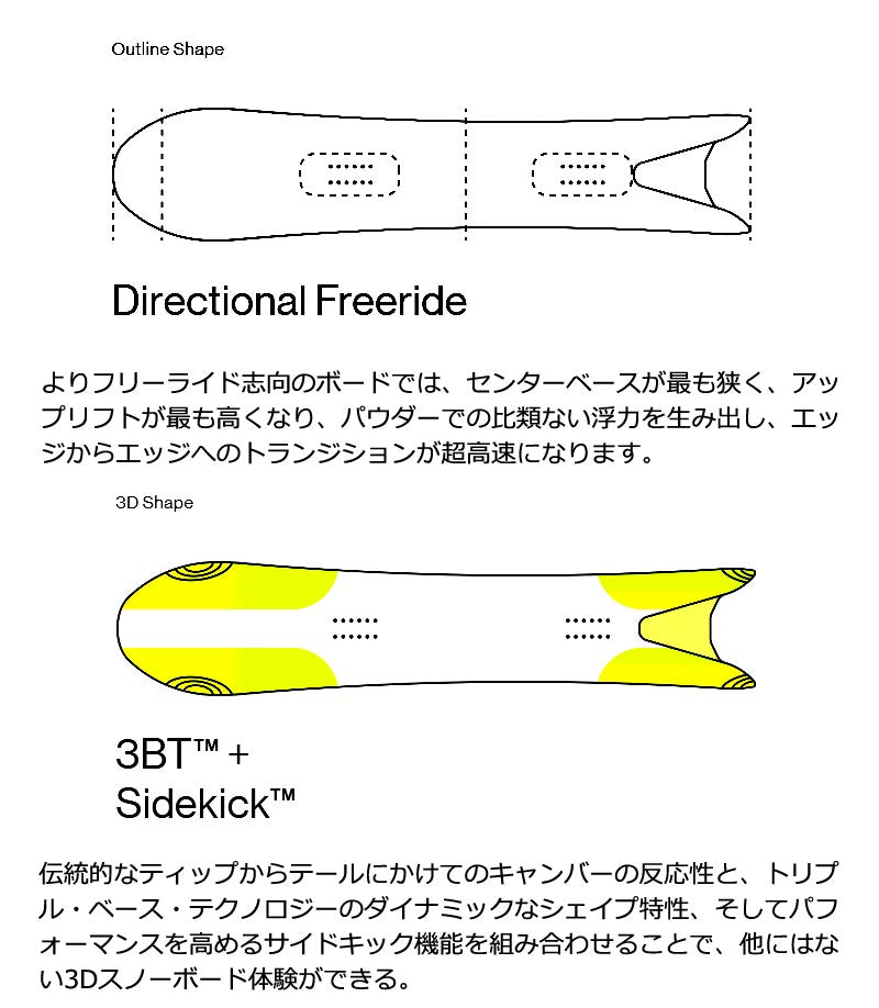 | 形状 | キャンバー(MEDIUM CAMBER 3BT+SIDEKICK)ディレクショナル |