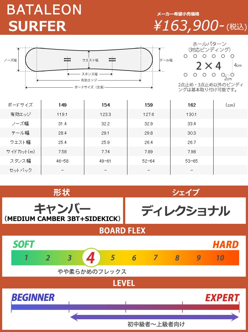 | 形状 | キャンバー | シェイプ | ディレクショナル |