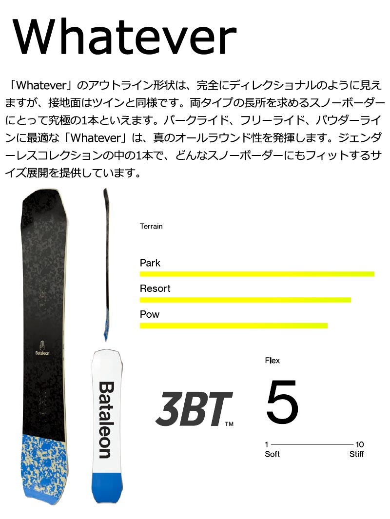 「Whatever」のアウトライン形状は、完全にディレクショナルのように見えますが、接地面はツインと同様です。 両タイプの長所を求めるスノーボーダーにとって究極の1本といえます。 パークライド、フリーライド、パウダーラインに最適な「Whatever」は、真のオールラウンド性を発揮します。 ジェンダーレスコレクションの中の1本で、どんなスノーボーダーにもフィットするサイズ展開を提供しています。 ※ソールカラーは画像のカラー以外で文字とソール全体のカラーの反転バージョンがあります。 ご選択できないことをご了承くださいませ。 最強の持続性を誇るマウンテンライフワックスはMLW商品ページよりボードと合わせて同時ご注文ください。 詳しくはMOUNTAIN LIFE WAXページをご確認ください。 しっかりとしたメンテナンス施行を行わせて頂いておりますので、メンテナンス無しをお選びいただいた場合より当店加工のBASIC & EXPERTベースメンテナンスもご希望の際は、通常発送より2〜4日後の発送となります。 多少お時間頂きます事をご了承ください。 |