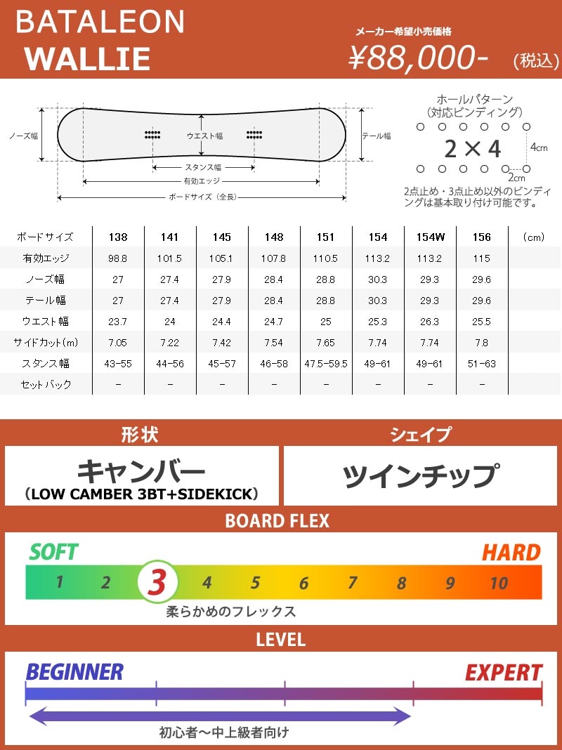 「Wallie」は、おなじみのスポットで新たな可能性を発見したり、今までの不可能を可能にすることができるボードです。 パークやフリースタイルのスキルアップを目標に設計されており、スーパーチューブカーボンストリンガー、ユニークなウォーリーチップを搭載してます。 ジェンダーレスコレクションの中の1本で、どんなスノーボーダーにもフィットするサイズ展開を提供しています。 最強の持続性を誇るマウンテンライフワックスはMLW商品ページよりボードと合わせて同時ご注文ください。 詳しくはMOUNTAIN LIFE WAXページをご確認ください。 しっかりとしたメンテナンス施行を行わせて頂いておりますので、メンテナンス無しをお選びいただいた場合より当店加工のBASIC & EXPERTベースメンテナンスもご希望の際は、通常発送より2〜4日後の発送となります。 多少お時間頂きます事をご了承ください。 |