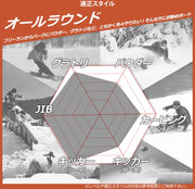 | 滑走適正スタイル | 1.ジブトリック(BOX&レール) 2.ワンメイク(キッカー) 3.グラトリ(グランドトリック) 4.フリーラン (スタイルや技術によって変化します) |