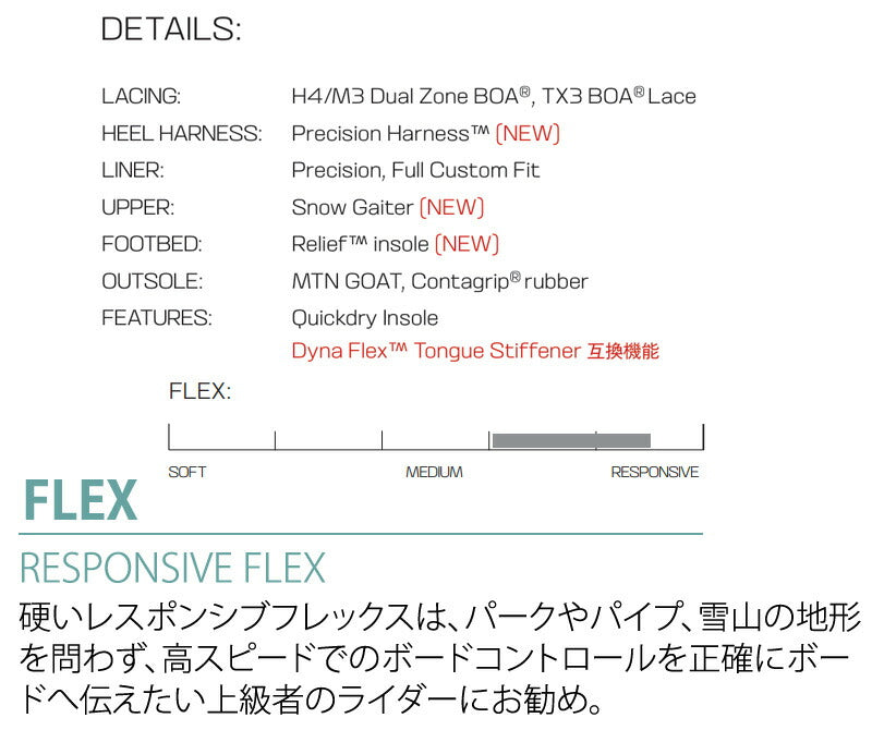 Echo Dual BOA?はオールマウンテンブーツと呼ぶにふさわしい万能なブーツです。サポート力の高いアッパーにデュアルゾーンBOA?を搭載し、あらゆるコンディションで最高級の快適性と万能性を提供します。サポート力、快適性、耐久性を担保するため、最先端のサステナブルなリサイクル素材を惜しみなく投入し、作り上げられています。 ブーツとバインディングの相性やフィッティング、サイズ感に関して等、ご不明な点があればお気軽にお問い合わせください。サイズ交換も当店在庫有りの範囲で対応可能ですので、詳しくはサイズ交換リンクをご確認下さい。 |