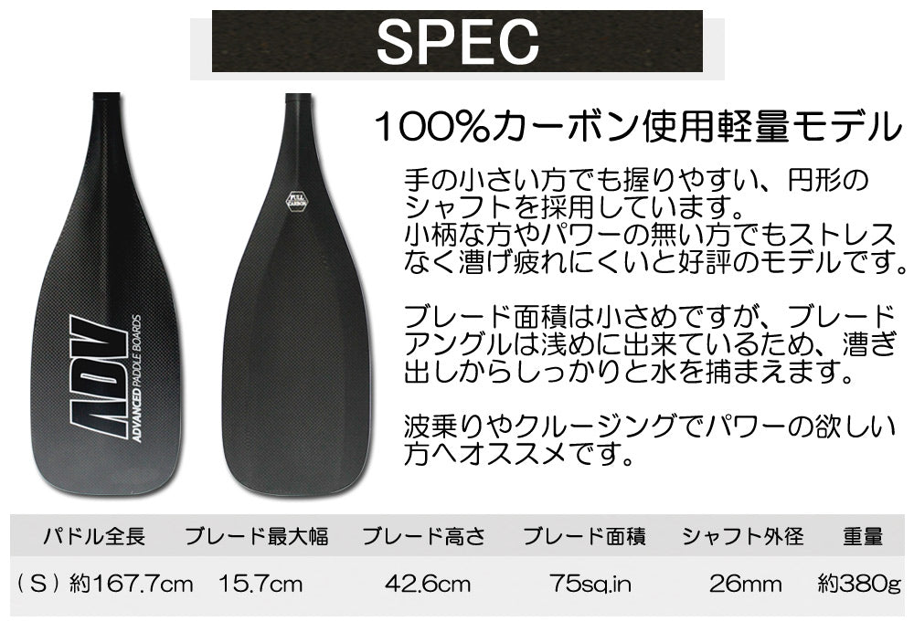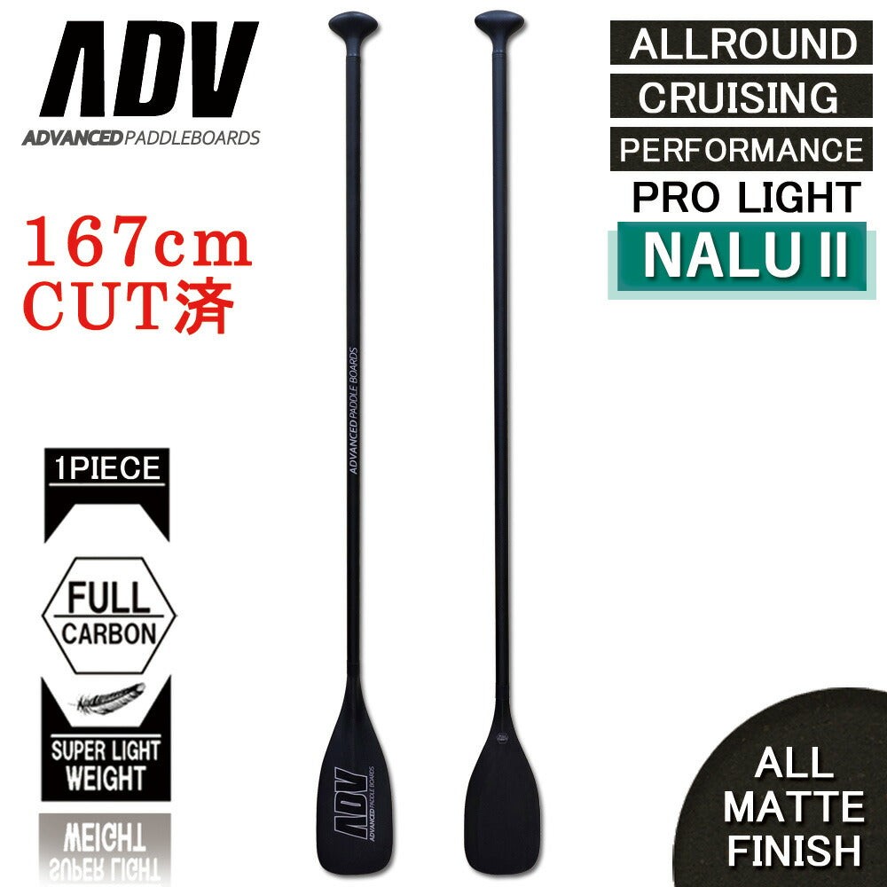 167cmカット済カーボンパドル NALU2 1PC ADVANCED アドバンス SUP サップ オールマット仕上げ パドルボード 西濃運輸営業所止め 送料無料