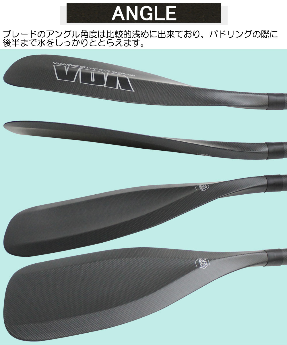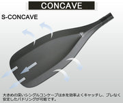 ブレードは大きめのコンケーブにより水を効率よくキャッチし、ブレなく安定したパドリングが可能。