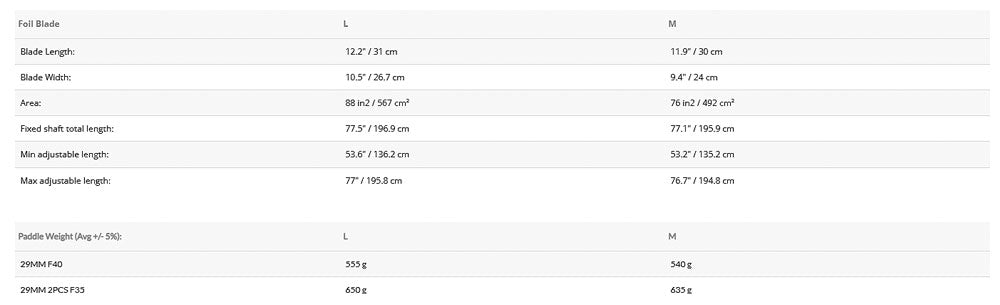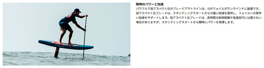 フォイルパドルは低アスペクト比のブレードを採用し、低速域でも素早い加速と力強いパフォーマンスを実現します。 このブレードはフォイルへの加速を重視して設計されており、ブレード高を低くすることでブレードとフォイル間のクリアランスを確保しています。 カーボンバージョンは、パフォーマンス、耐久性、そして価格のバランスに優れており、妥協のない最高峰の品質を求めるライダーにとって最適な選択肢です。 |