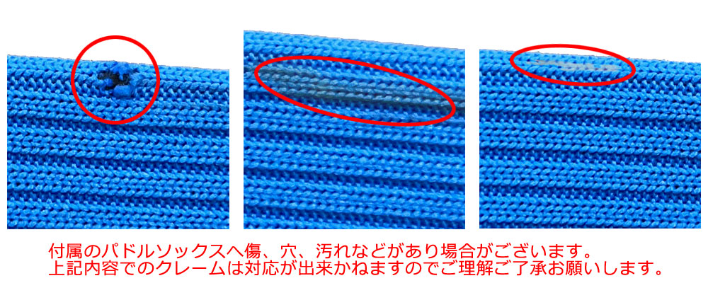 ・付属のパドルソックスへ傷、穴、汚れなどがあり場合がございます。 ・上記サイズなどに関しましてはメーカーサイトより頂いている物となり、個体差で異なる場合がございます。 ・予告なく仕様(デザイン、カラー)が変更される場合がございます。 ・上記内容でのクレームは対応が出来かねますのでご理解ご了承お願いします。 |