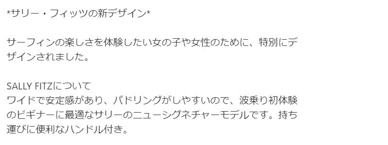 | コメント | サリー・フィッツの新デザイン。 サーフィンの楽しさを体験したい女の子や女性のために、特別にデザインされました。 サリーフィッツについて ワイドで安定感があり、パドリングがしやすいので、波乗り初体験のビギナーに最適なサルのニューシグネチャーモデルです。持ち運びに便利なハンドル付き。 Softechはソフトボードの分野において究極のファンとパフォーマンスを提供します。 非常に優れた耐久性を持つ素材を使用し、十分な実績のある工業技術を利用して作られたSoftechの ポードは、考えうる限り最もタフな使用にも耐え、ビギナーから経験豊かなサーファーまでさま ざまなスタイルに対応します。 Softechのソフトボードは、ソフトボードのパフォーマンス性と テクノロジーという面においてリーダー的な存在にあります。 どんな年代のサーファーにも、 またどんなレベルのサーファーにも適応するように、さまざまなサイズとデザインを取り揃えています。 親子で同じボードで楽しめるおススメサーフボードです。 ※FCS2タイプのモデルにはFCSのスクリュー(ネジ)は付属しておりません。 |