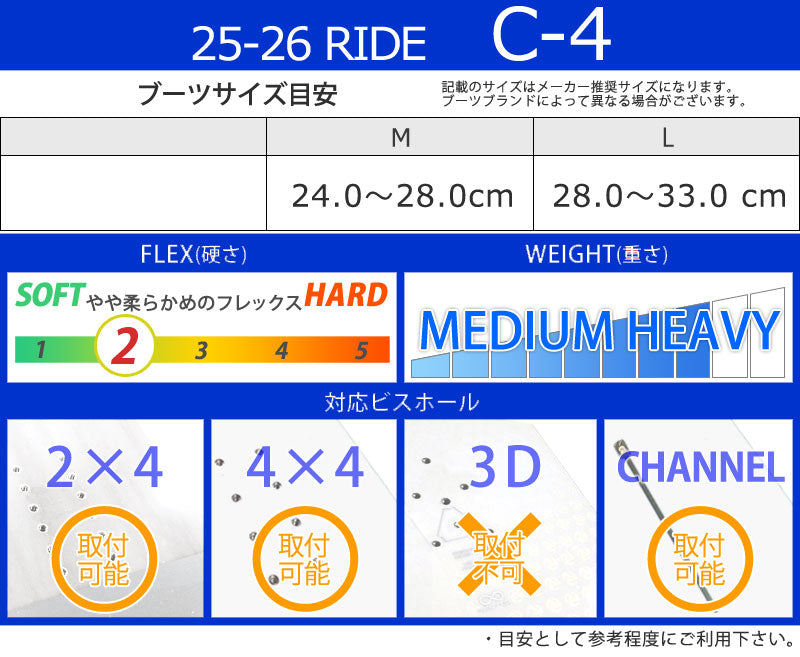 | サイズ目安 | ・記載のサイズはブーツブランドによって異なります。 |