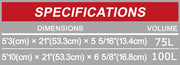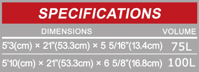 5’3(cm) × 21”(53.3cm) × 5 5/16”(13.4cm) / 75 L |
