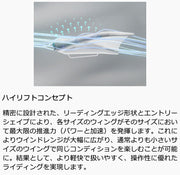 4.0平米 重量:2.3kg 【空気圧】 LE:9PSI ストラット:9.5PSI スパン:2890mm ストラット:1780mm アスペクト比:2.31 推奨リーシュの長さ:100cm 【付属品】 ・990カーボンモノハンドル ・チューブラーファイアフライバッグ (M) ・ポンプアダプター ・ブラダーリペアセット ※リーシュコード、ポンプは付属しておりません。 ※予告なくデザイン、内容が変更される場合がございます。