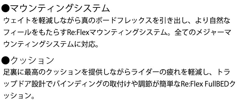 | ベストマッチブーツ | ・BURTON DC NITRO/バートン ディーシー ナイトロ ※ご使用サイズやモデル等で変わる部分もございますのであくまで目安としてお考え下さい。 こちらに記載以外のバインディングにも使用可能です。 |