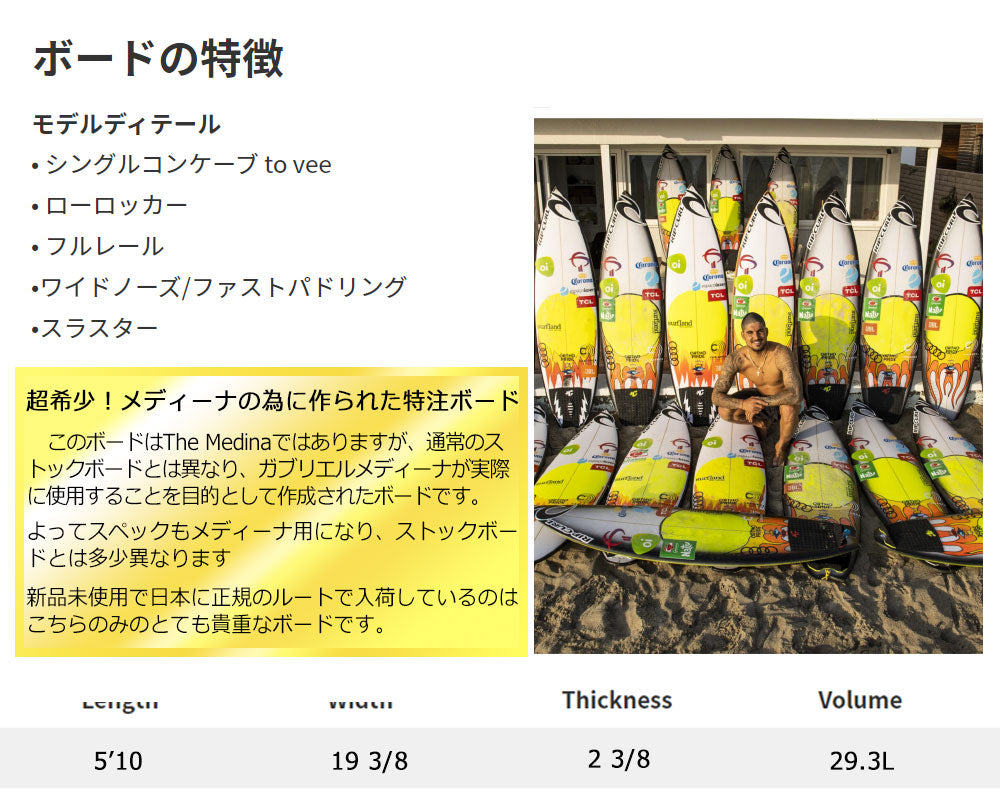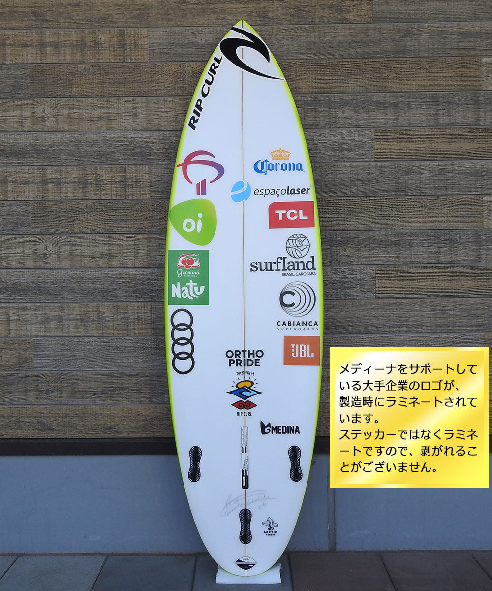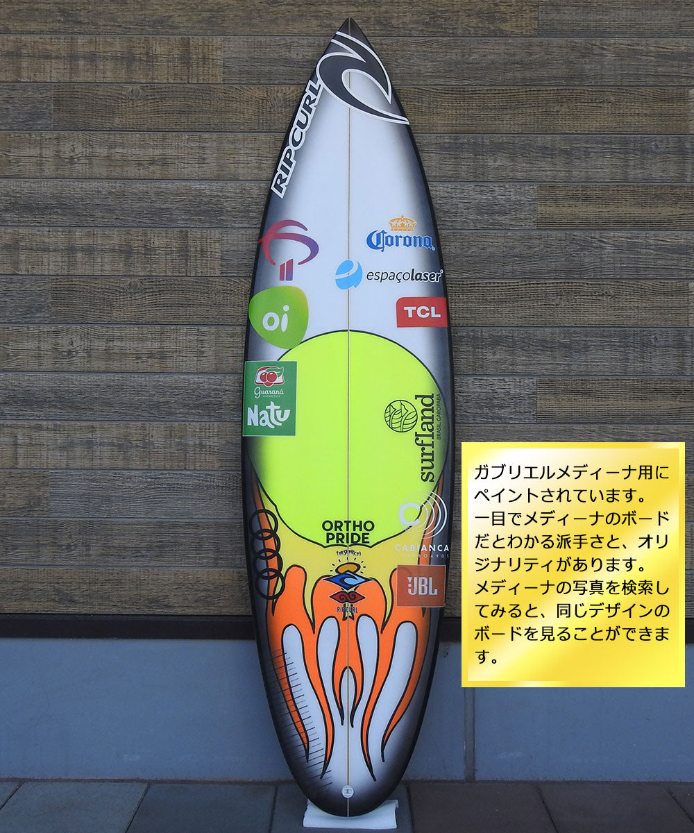 | ブランド | 昨年WSLで3回目のワールドチャンピオンに輝いたガブリエルメディーナが使用するサーフボードメーカー。シェーパーはブラジル・サンパウロ出身のジョニーカビアンカ。