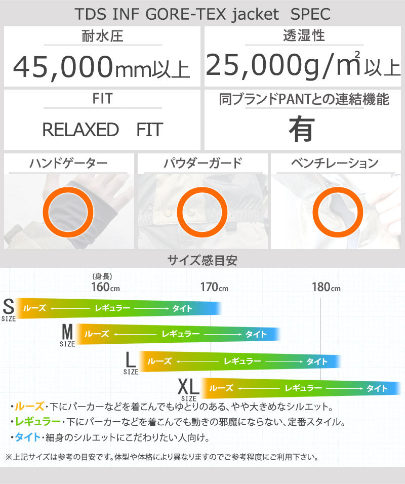 | モデル名 | TDS INF GORE-TEX jacket | モデル名カナ | ゴアテックスジャケット |