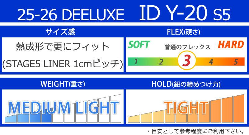 ID Y-20は単なるブーツではありません。まさにゲームチェンジャーです。 スノーボードブーツの新たなスタンダードを確立するID Y-20は、究極のパフォーマンスと快適性を最先端のイノベーションと融合させています。 軽量素材とRapid Reactモジュラーテクノロジーを採用したこのブーツは、あらゆる地形でワンランク上のライディング体験を提供します。 最新のFuture Flex構造により、履いたその日から、そしてその寿命全体を通して、完璧なフレックスを保証します。 インジェクション成型されたBoosterタンは、すねを完璧に包み込み、ワンランク上のフィット感を実現し、洗練されたプロファイルを生み出します。最大限のサポートを提供しながら、甲周りをしっかりと固定します。 あらかじめ成形されたインジェクション成型TPUフレックスガードは、かかと部分を安定させ、優れたフィット感とバインディングへの確実なホールド感を提供します。 さらに、特別に開発されたパワーリンクがフレックスガードとソールを連結し、ヒールからトゥエッジへの効率的なパワー伝達を実現します。これにより、かつてないレベルのレスポンスを実現し、卓越したライディング体験を実現します。 新開発のスペクトラソールは、ヒール部分に中空セクションを設け、衝撃エネルギーを吸収し、完璧な着地を実現します。 ID Y-20でスノーボードの未来へ足を踏み入れましょう。 インナーの代名詞ともなった「サーモインナー」と呼ばれる熱成型インナーを武器に、幅広いスノーボーダーに人気のオーストリアのスノーボードブーツ専門ブランドDEELUXE。 ※こちらはSTAGE5 LINER(熱成型可能なサーモインナー)となり、成型なしでも使用可能ですが熱成型加工を行うと加工前より大きくフィット感が向上します。フィット感を向上されたい方で熱成型をお考えの方はご購入前に持ち込み成型可能ショップをご確認ください。 当店ブレイクアウトでも熱成型受け付けております。 ブーツとバインディングの相性やフィッティング、サイズ感に関して等、ご不明な点があればお気軽にお問い合わせください。サイズ交換も当店在庫有りの範囲で対応可能ですので、詳しくはサイズ交換リンクをご確認下さい。 |
