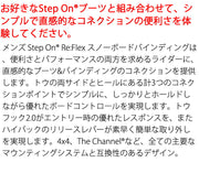 コメント 今季より登場のステップオンバインディング、軽量なバンディングと脱着が楽なシステムは幅広いライダーから支持されている。