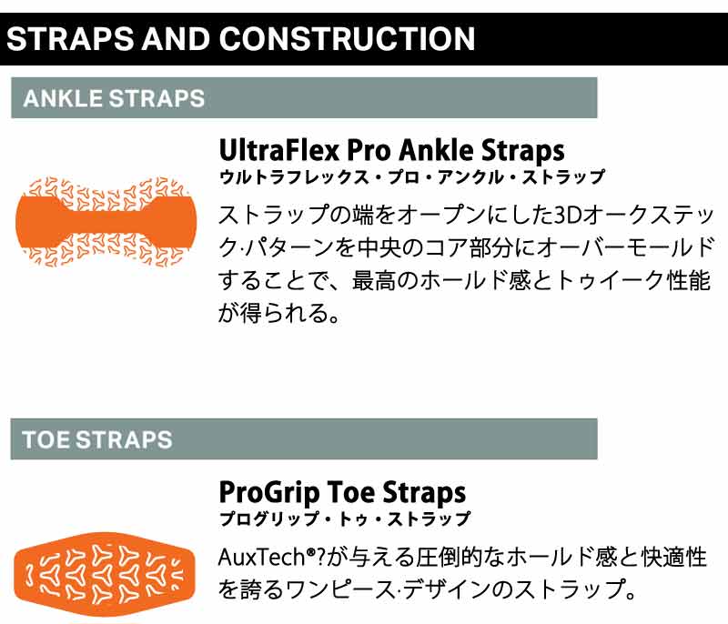 390 Boss FWは軽量でパワフルでありながら、バターやトゥイークができるほど遊び心のあるライディングを求めるライダーのためにデザインされた。フルラップ?プラットフォームが頼れるパフォーマンスを発揮し、メロウなフレックスとジブ用のストラップ?パッケージでチームとショップスタッフのお気に入り。 バインディングとブーツの相性やフィッティングに関して等、ご不明な点があればお気軽にお問い合わせください。 ※滑走での振動やストラップの着脱等でビスを使用している部分は緩んできますので、締り具合など滑走前に必ずご確認をお願いします。またご使用のブーツとストラップの調整をお願いいたします。調整が適切でない場合、負荷が集中し破損の原因となります。 |