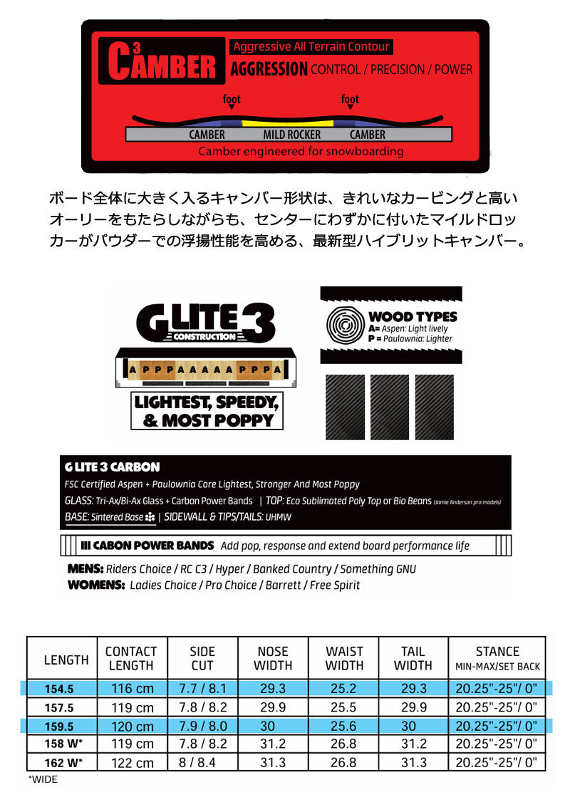 | 形状 | ハイブリッドキャンバー(C3 CAMBER)ツインチップ |