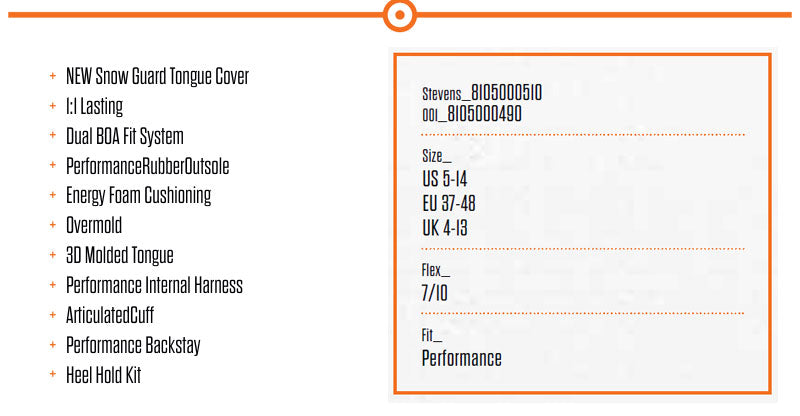 ワンフットライディングやストリートシーンで抜群の存在感を示す、スコットスティーブンスのシグネチャーモデル。32ラインナップの中でもんミディアムフレックスでどんなライディングでも対応可能。完璧なフィット感で快適性を重視しています。超ソフトなエナジーフォームのクッション性と耐久性があるアウトソールは強い衝撃にも耐え、踏み込むとしっかりしたレスポンスももたらします。 ブーツとバインディングの相性やフィッティング、サイズ感に関して等、ご不明な点があればお気軽にお問い合わせください。サイズ交換も当店在庫有りの範囲で対応可能ですので、詳しくはサイズ交換リンクをご確認下さい。 |