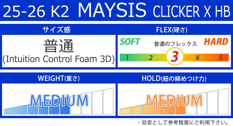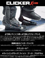 *Clicker X HB バインディングとのみ互換性があります ブーツとバインディングの相性やフィッティング、サイズ感に関して等、ご不明な点があればお気軽にお問い合わせください。サイズ交換も当店在庫有りの範囲で対応可能ですので、詳しくはサイズ交換リンクをご確認下さい。 |