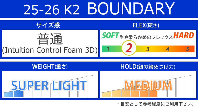 | ベストマッチ ビンディング | ・K2/ケーツー ※ご使用サイズやモデル等で変わる部分もございますのであくまで目安としてお考え下さい。 こちらに記載以外のバインディングにも使用可能です。 |
