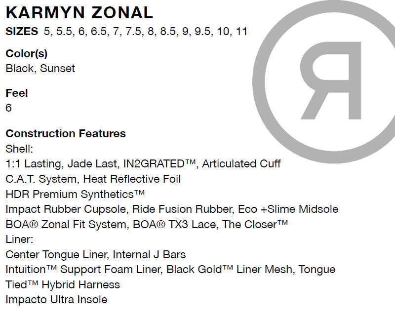 25-26 RIDE/ライド KARMYN ZONAL カーマイン レディース ブーツ ダブルボア 熱成型対応 スノーボード 2026