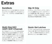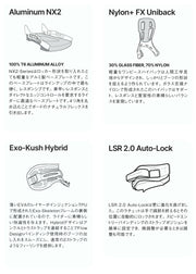 そのユニークなケーブルシステムは、すべてのモデルにパワフルなフィーリングを与え、ユニークなフュージョンストラップや、伝説的な NX2のようなより硬いモデルでは、そのフィーリングがターボチャージされる。